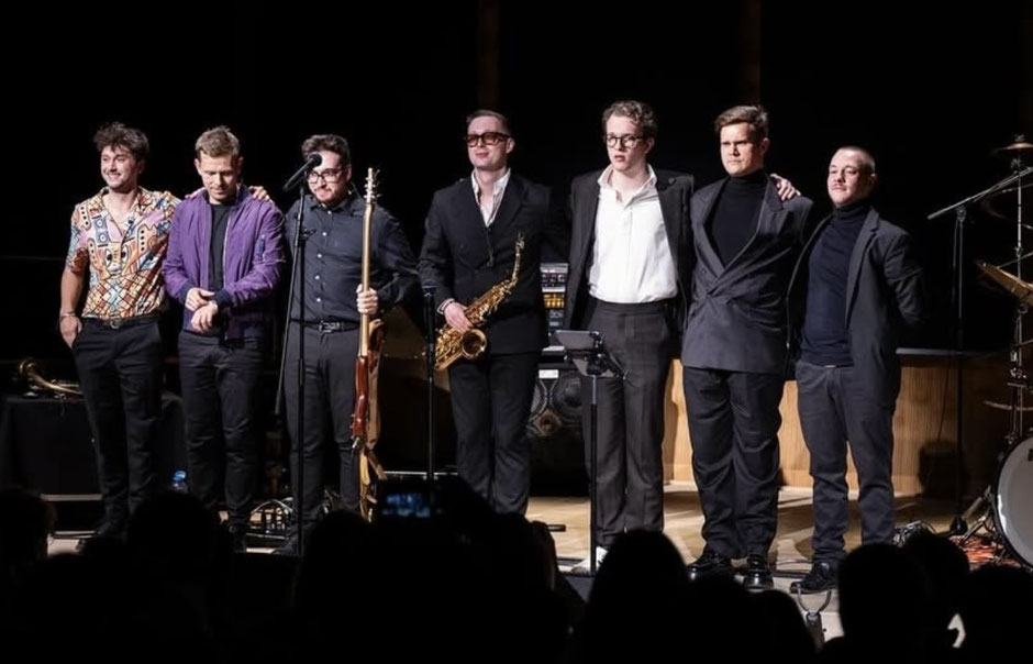 Jazz-Gala mit einer beeindruckenden Besetzung aus Jazzstars wie dem Echo Jazz Gewinner Nils Wülker, dem Youngstar Jakob Manz, dem Münchner Starbassisten Nils Kugelmann und dem Bujazzo-Sänger Kilian Sladek. Ergänzt wurde das Ensemble durch Konstantin Kölmels Band (Justin Zitt und Valentin Hansel), die das Publikum in eine Welt voller Leidenschaft und Rhythmus entführen wird. Die einzigartige Allstar-Band vereinte das Spannendste, was der junge deutsche Jazz zu bieten hat, und begeisterte alle Zuhörer mit grooviger, eingängiger Musik aus Jazz, Groove und Funk.